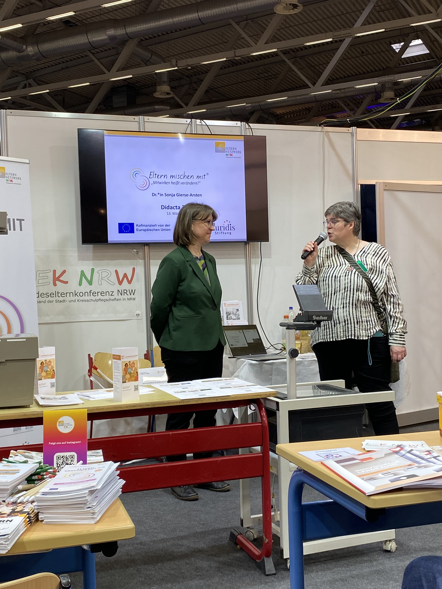 Am gemeinsamen Stand stellten wir die vielfältige Arbeit des Elternnetzwerks NRW vor – ebenso wie das Projekt „Eltern mischen mit 2.0“ und „Her Diversity“. Zahlreiche Messebesucher*innen nutzten die Gelegenheit, sich über unsere Angebote, Unterstützungsmöglichkeiten und Projekte zu informieren.